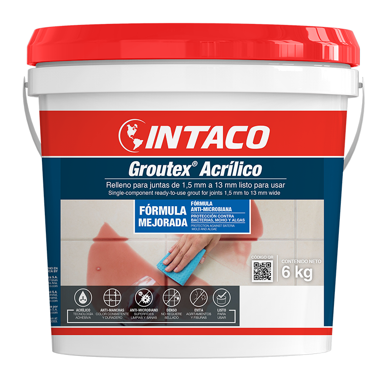 Groutex Acrílico es un material acrílico con arena, color duradero y anti-manchas, listo para usar, especialmente formulado para rellenar juntas desde 1,5 mm hasta 13 mm, en pisos y paredes residenciales y comerciales en interiores y exteriores.