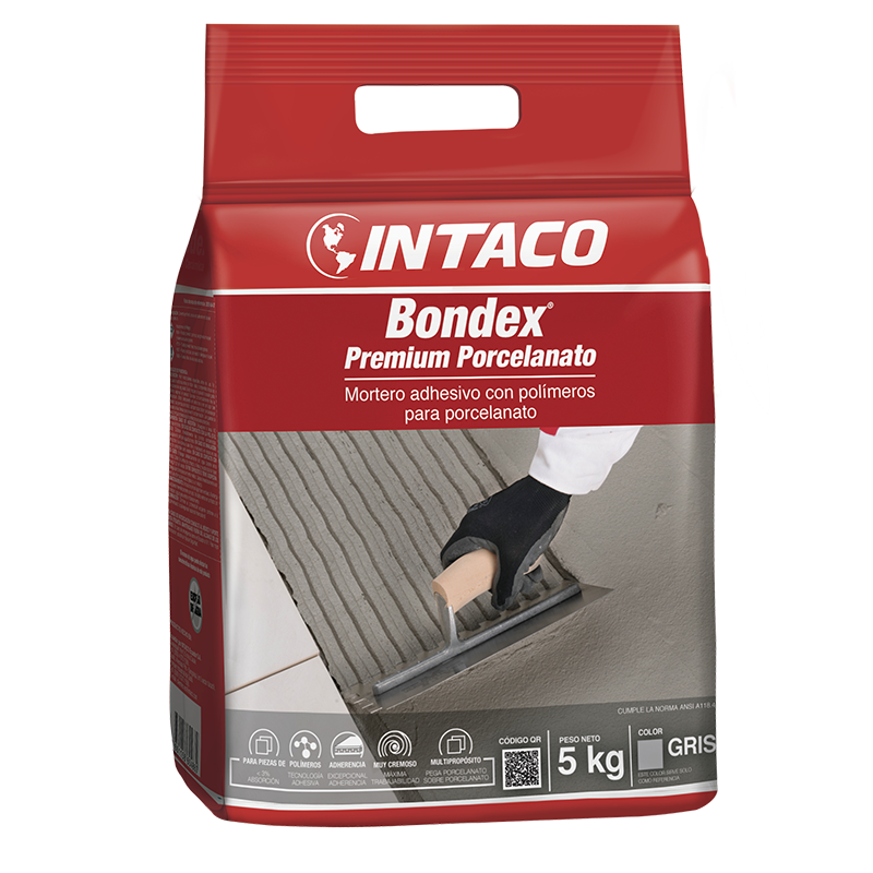 Mortero adhesivo, modificado con polímeros, tixotrópico y con mayor tiempo abierto de trabajo, especialmente formulado para pegar porcelanato y otras placas/piezas con absorción desde muy baja hasta alta, en pisos y paredes en interiores y exteriores.